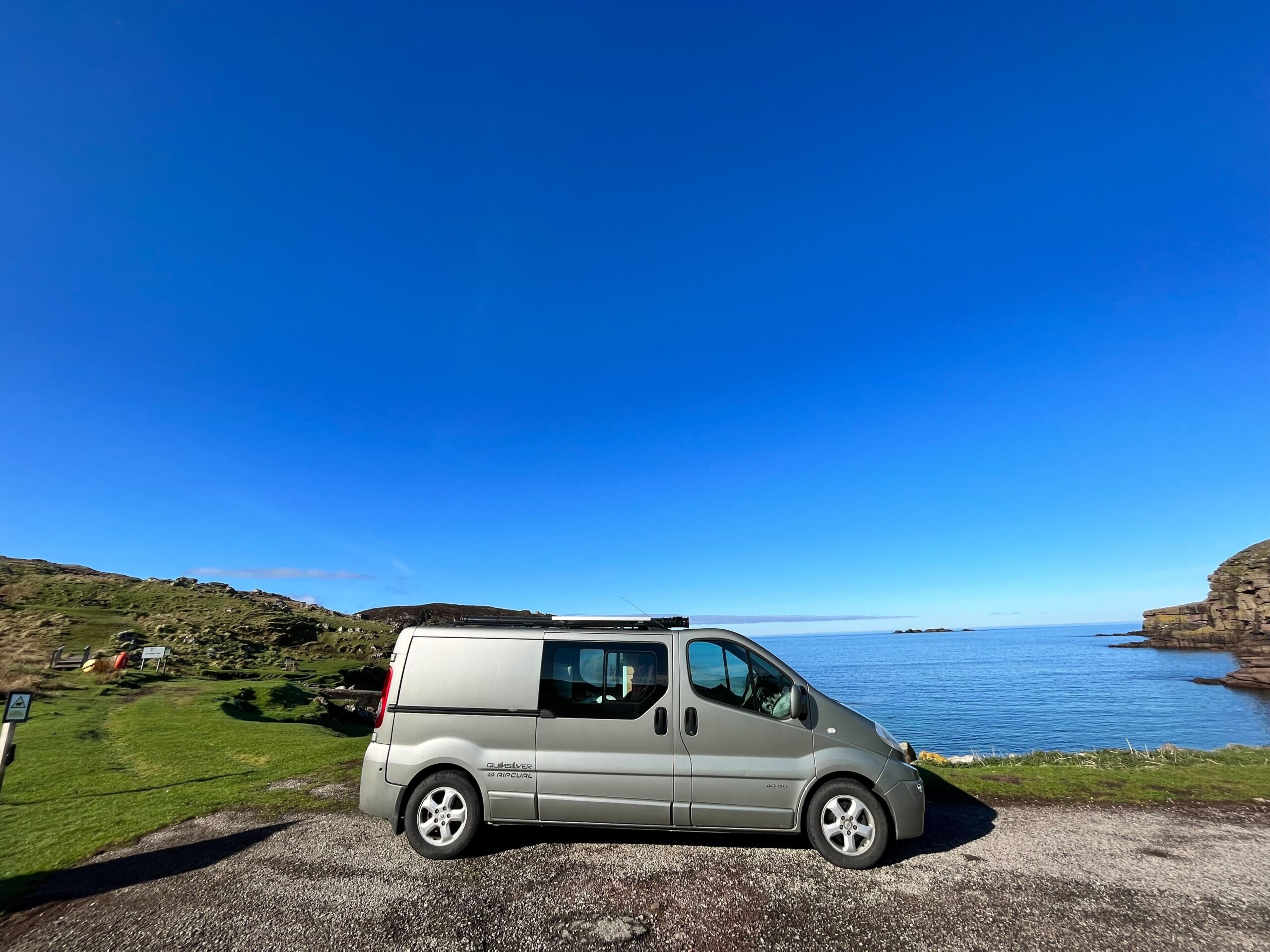 One of my favourite wild camping spots along the NC500 was at Droman Pier. Parked up right by the water’s edge; waking up to the sound of the water lapping in the morning was delightful.