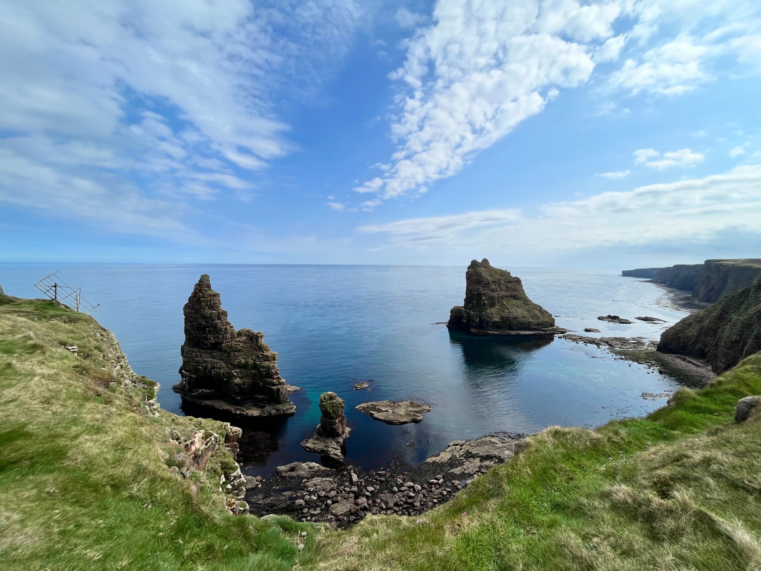 Situated at the most north easterly point on mainland UK, lies a rock formation out to sea known as Duncansby Stacks. This natural wonder can be found just along the coast from the famous John O’Groats sign post and is well worth a visit.