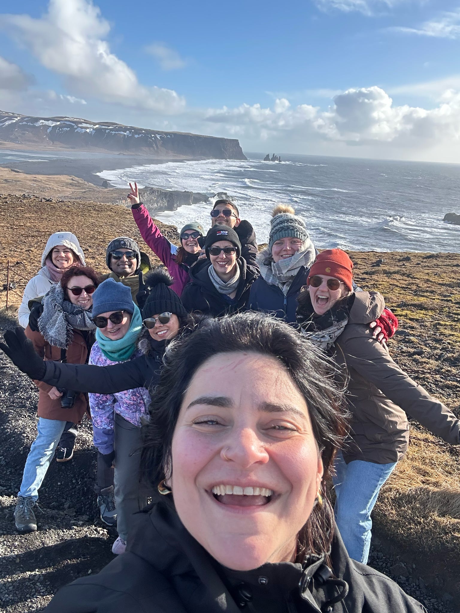 During the welcome meeting the night before, I set one very important expectation. I would be taking an excessive number of selfies and fully intended to make the most of every weird and wonderful photo opportunity Iceland had to offer, and I could only hope the group would join me in this quest. As it turned out, they did not just go along with it, they fully committed. By our very first stop, we already had a system. One person would throw a fist in the air and shout “WeRoaders, assemble!” and within seconds everyone would come running for a group selfie. We even created our own signature pose, which quickly became a regular feature all over Iceland.