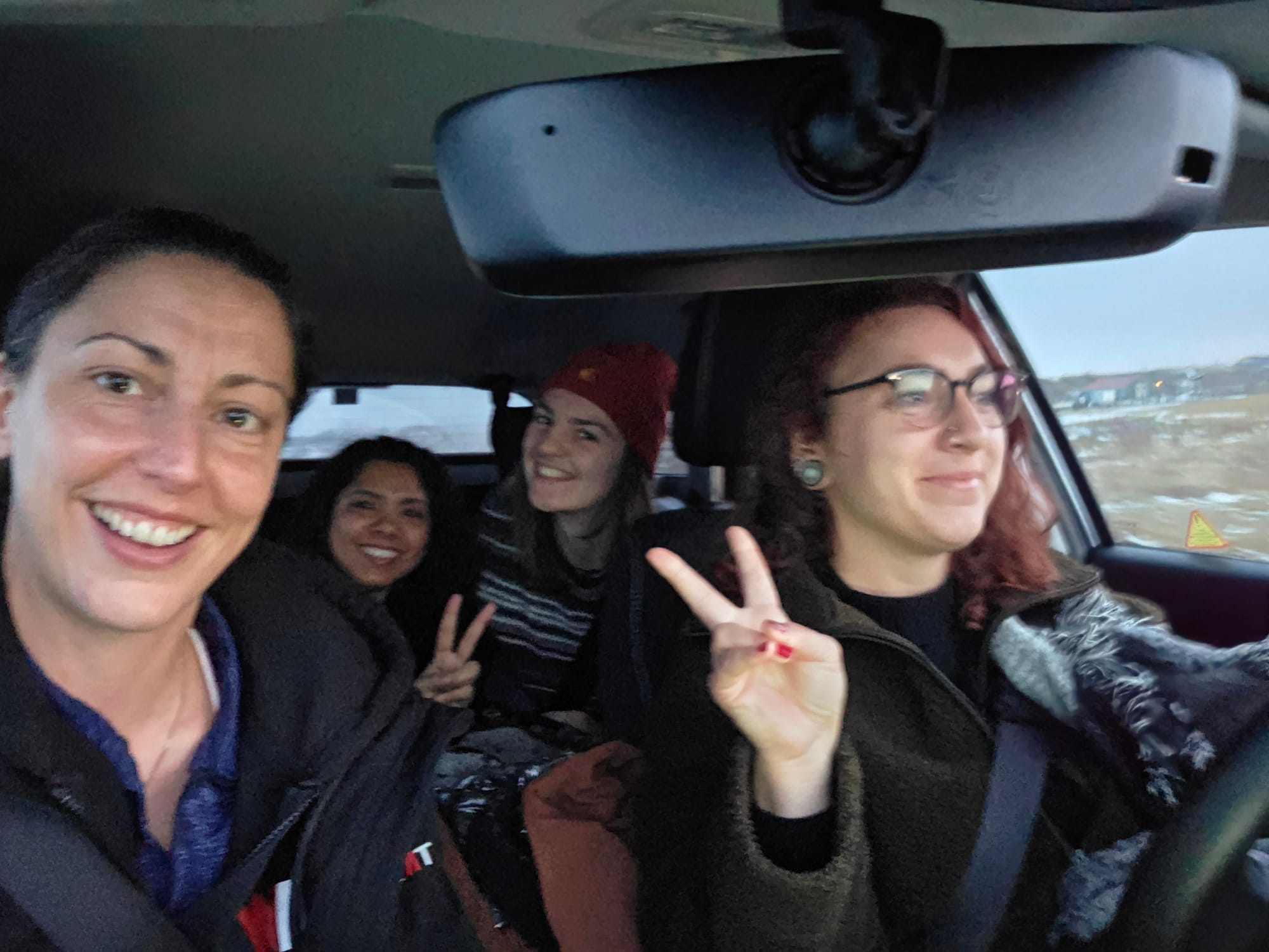 After our first night in Reykjavík, it was finally time to hit the road. We were up early to collect our cars and properly begin the adventure. At the hire centre we were handed sturdy 4x4s fitted with thick winter tyres and armed with what felt like every insurance policy imaginable, ready to take on Iceland’s unpredictable winter roads. Jay and Ziggy named their car Dustin, whereas Lichèlle and Lilian’s car was called Steve, so it was only natural mine and Maria’s car was called Eleven (Stranger Things, for those confused!).