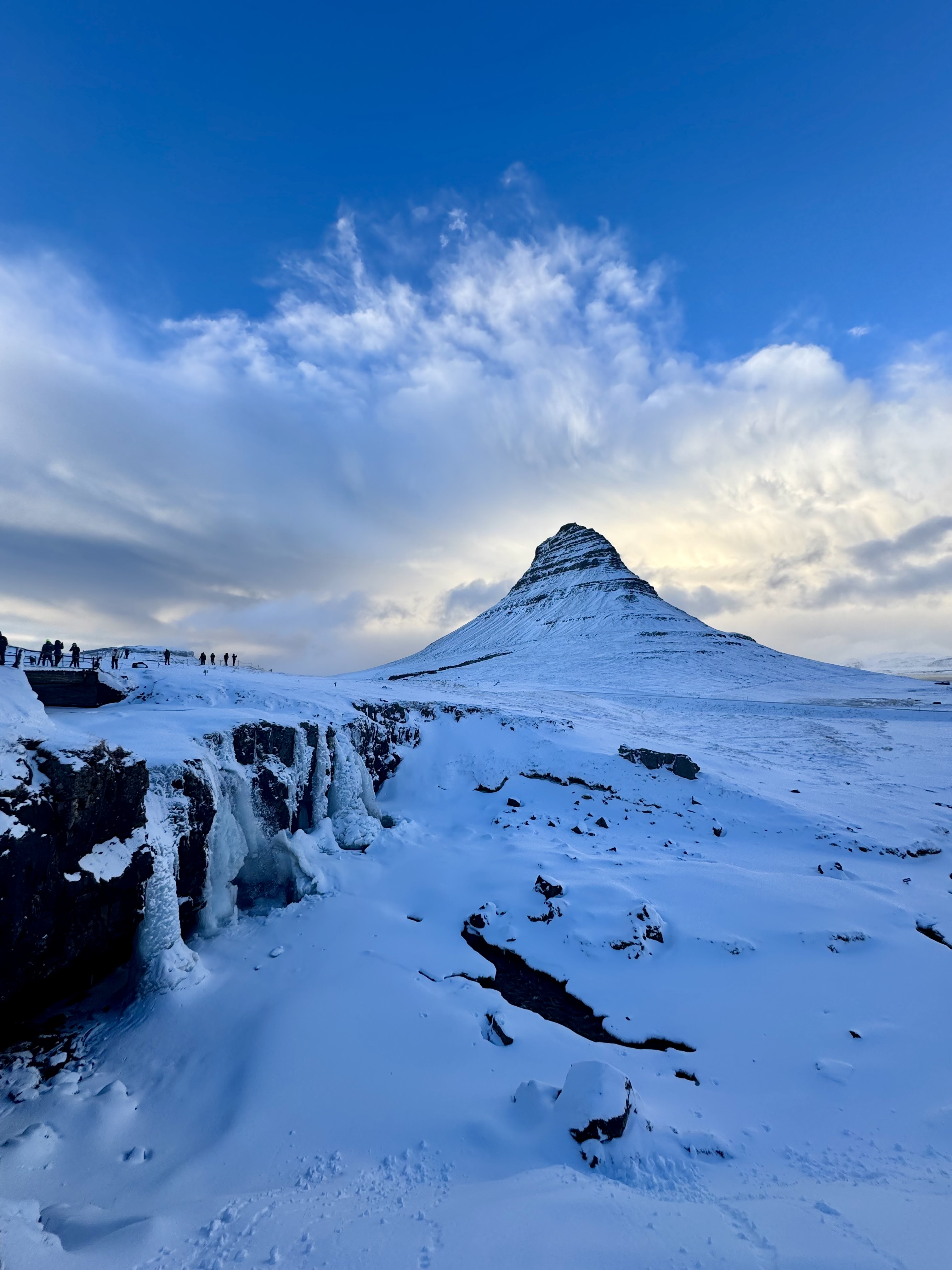 A quick stop at the supermarket gave us the chance to stock up on snacks and supplies before setting off towards the Snæfellsnes Peninsula. Snow fell heavily for most of the day, turning the drive into a proper winter challenge. Along the way we stopped at a cosy little coffee shop before visiting several incredible sights, including the Black Church of Búðir, the cliffs at Arnarstapi, Saxhóll crater, and the iconic Kirkjufell mountain rising dramatically from the snowy landscape.