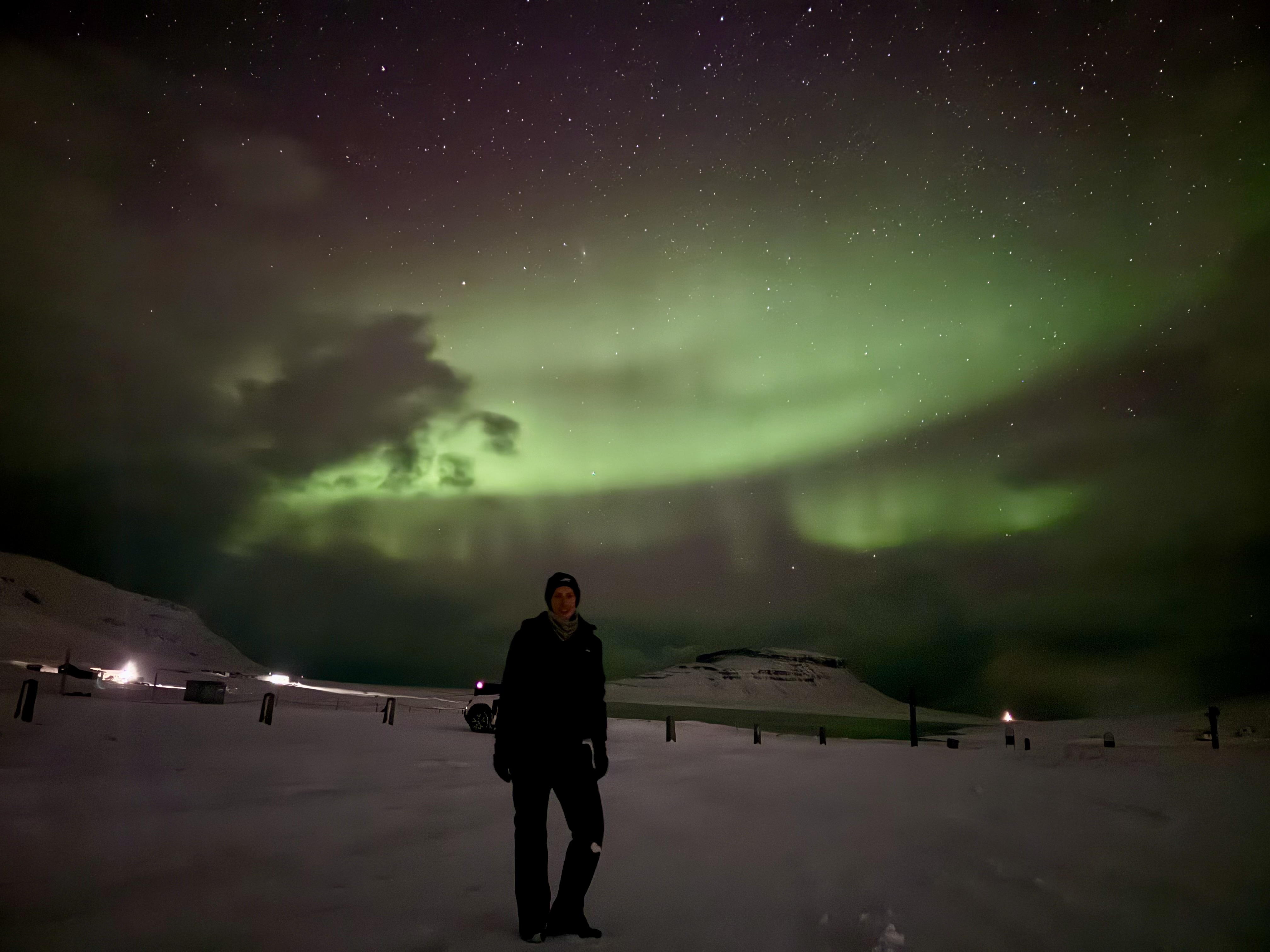 Throughout the day, Pri was completely convinced that we would see the Northern Lights, confidently telling Katy and I that they would appear at exactly 11pm. His certainty never wavered, even as we drove through heavy snow listening to his full Coldplay back catalogue. By the time we reached our hostel, the snow was still falling and the sky remained stubbornly overcast, so I was not entirely convinced, but it did feel like we were building towards some kind of cinematic moment.