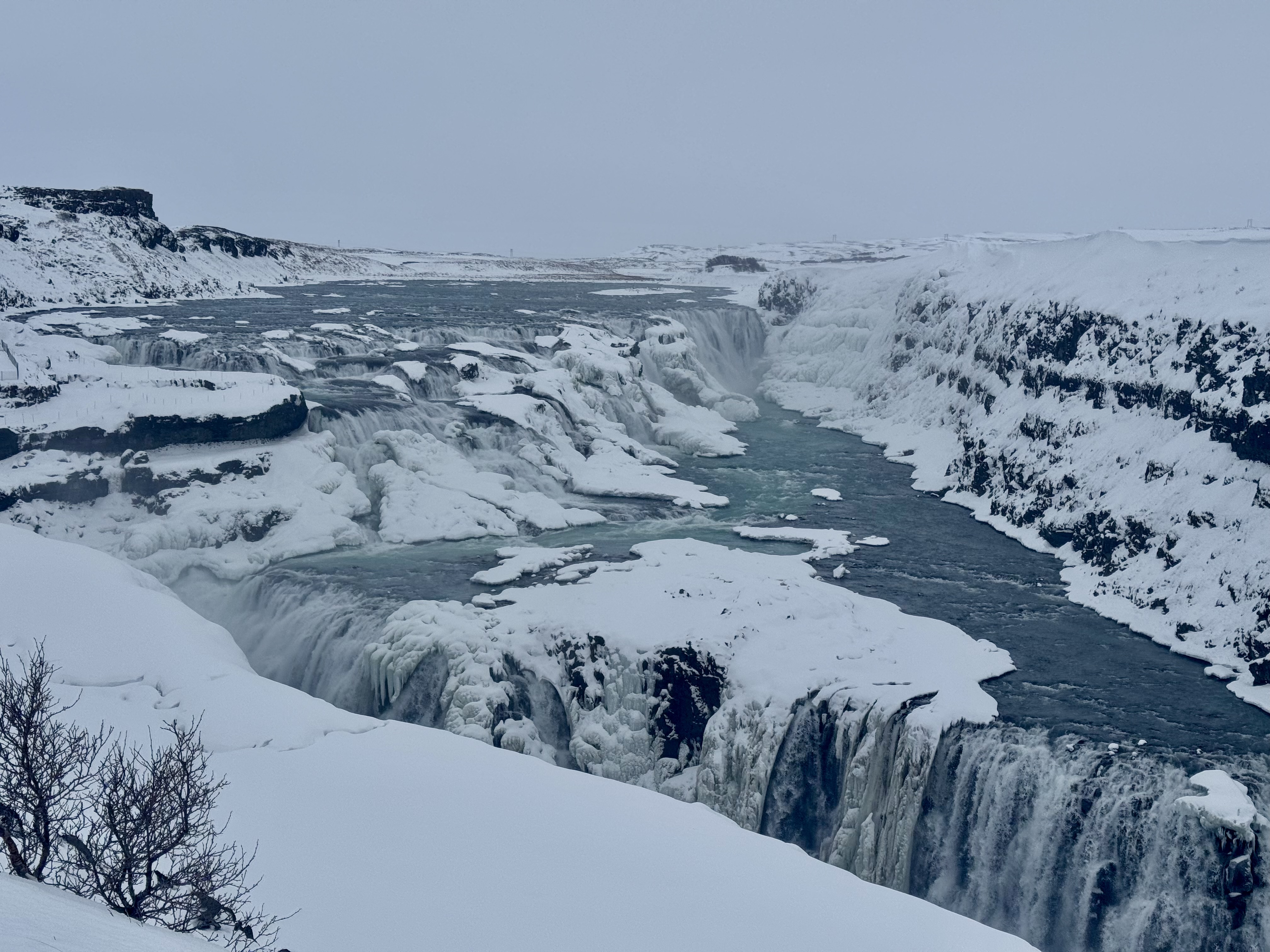 Our first real stop was Geysir, the famous hot spring that erupts a dramatic plume of boiling water every few minutes. Standing nearby as the water shot skywards was mesmerising even in the biting cold. From there, we continued to Gullfoss, one of Iceland’s most iconic waterfalls, roaring and thundering with icy power.