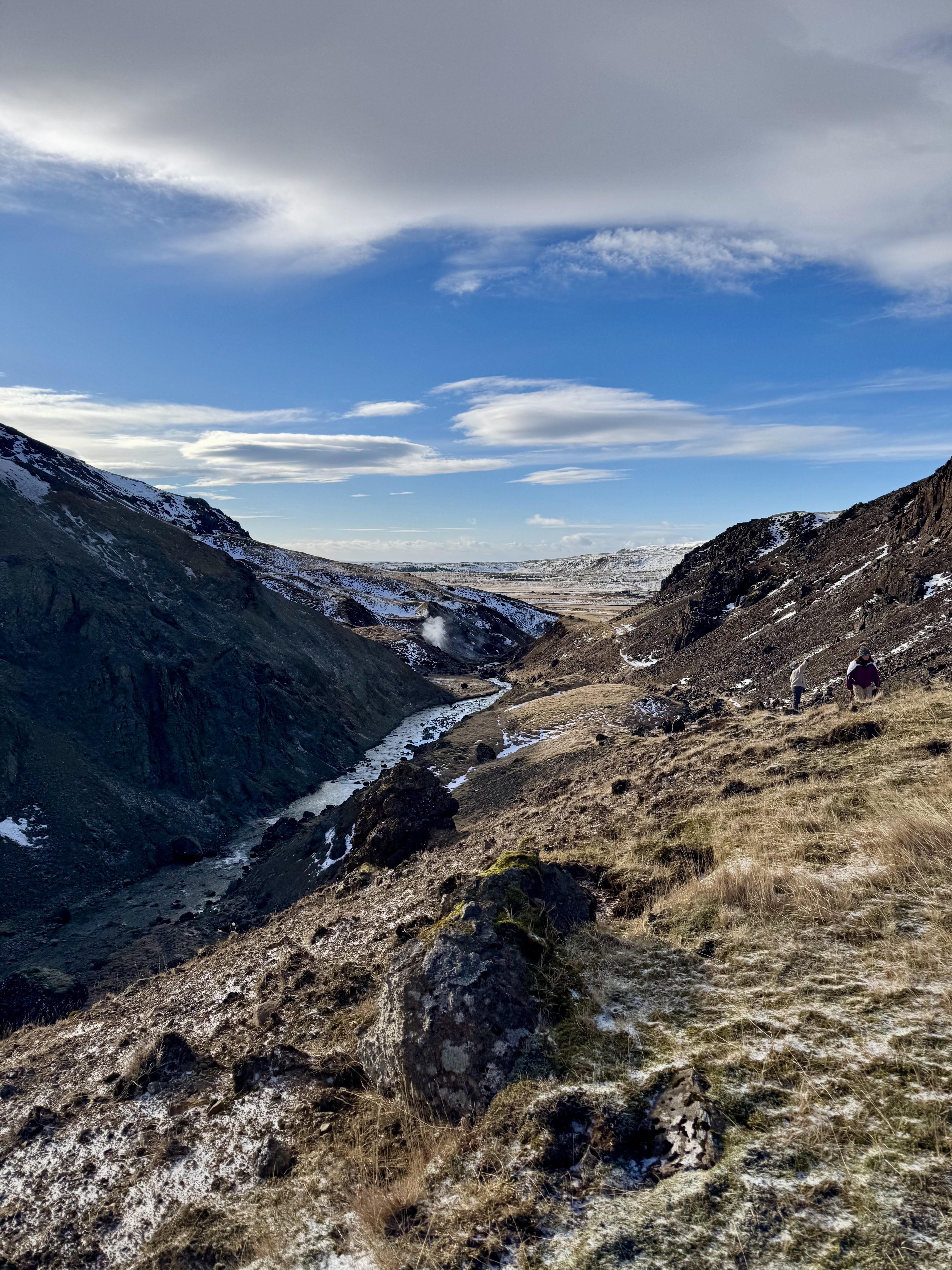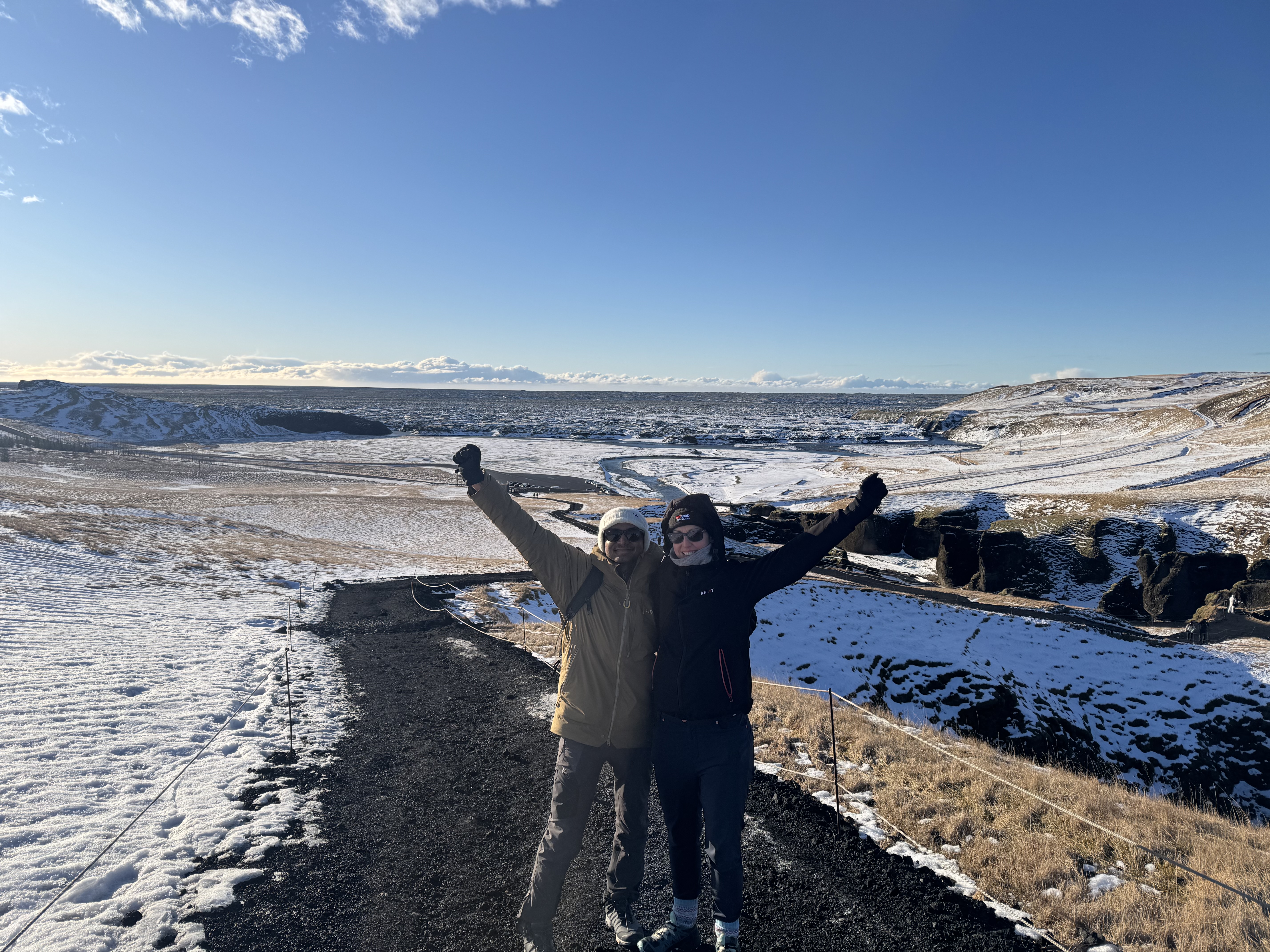 By the end of the day, our bodies were craving a rest, so we treated ourselves to a soak at the Secret Lagoon. The warm, steaming waters were bliss after two days of driving, hiking, and snow, and it was the perfect chance to reflect on the breathtaking landscapes we had already seen.
